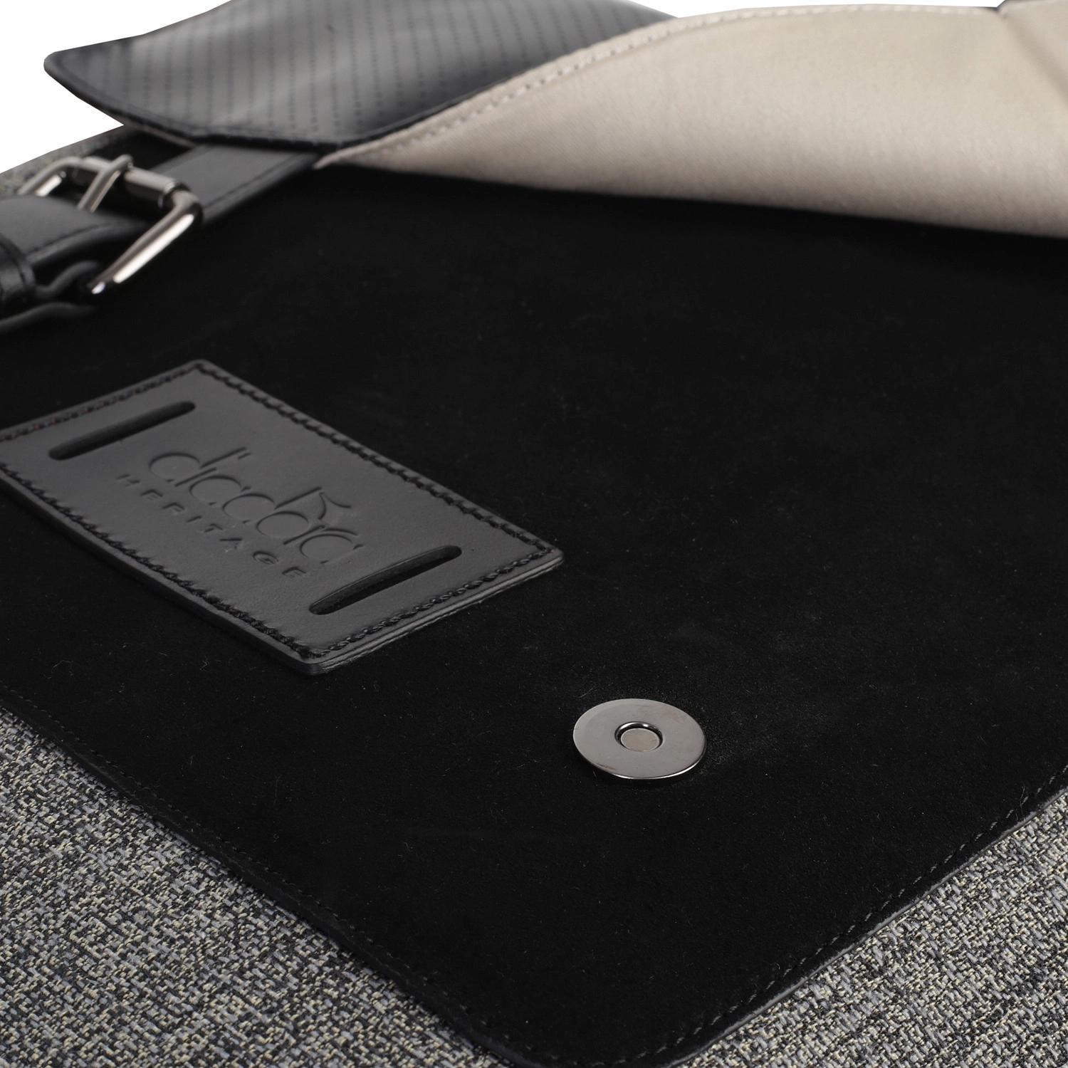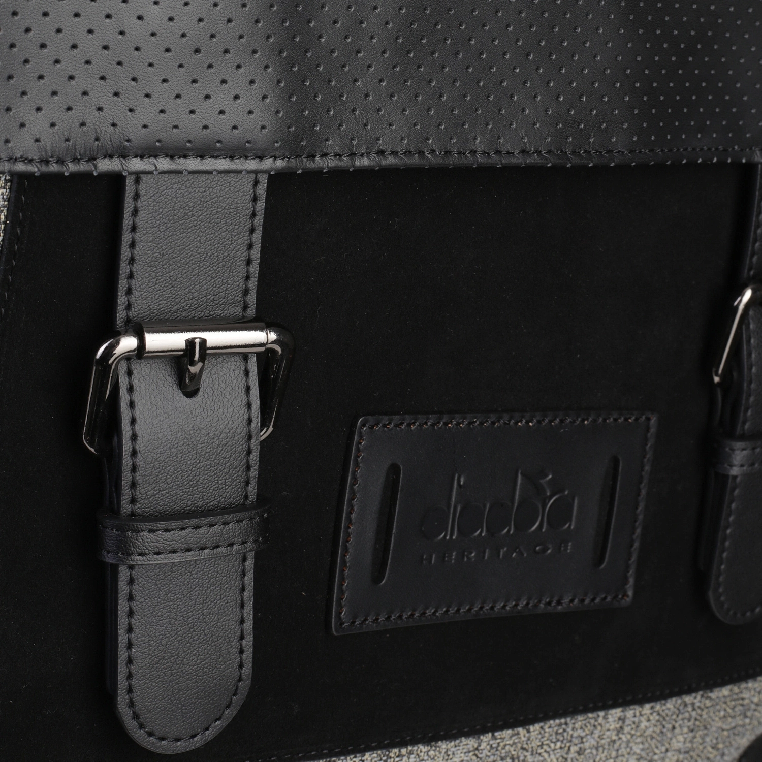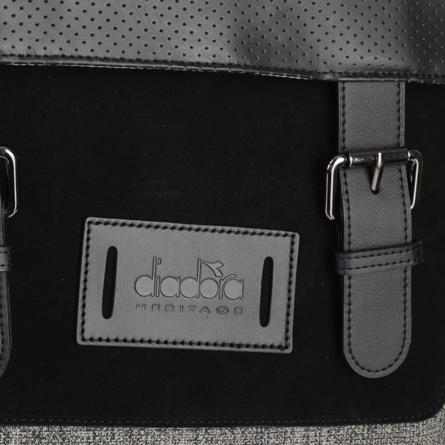 - z przodu znajduje kieszeń zapinana na metalowy zamek. Wykonana ze skóry zamszowej z logo DIADORA HERITAGE wytłoczonym na licowej skórze