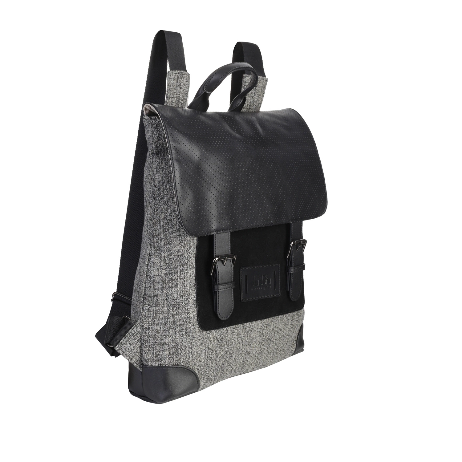 - minimalistyczna, klasyczna kolorystyka szarego melanżu oraz czarnych elementów ze skóry zamszowej i perforowanej skóry licowej podkreśla nowoczesny charakter plecaka o klasycznym fasonie