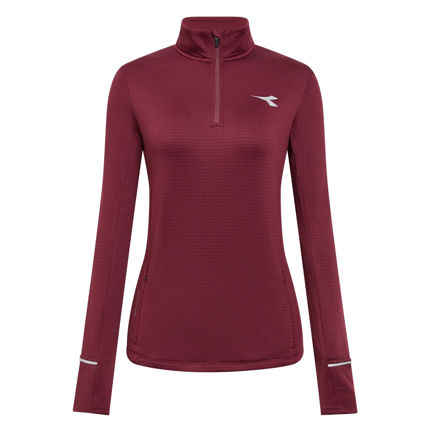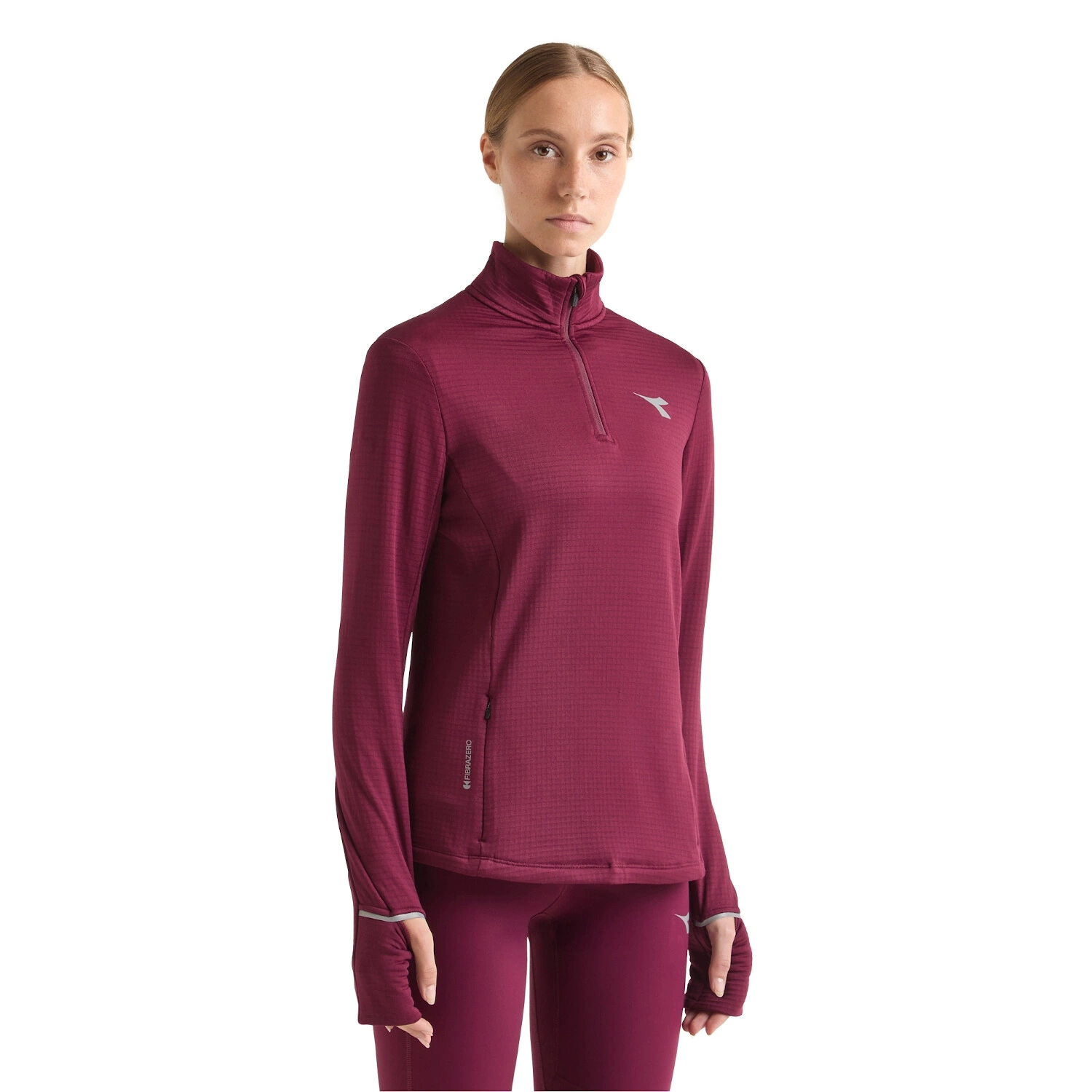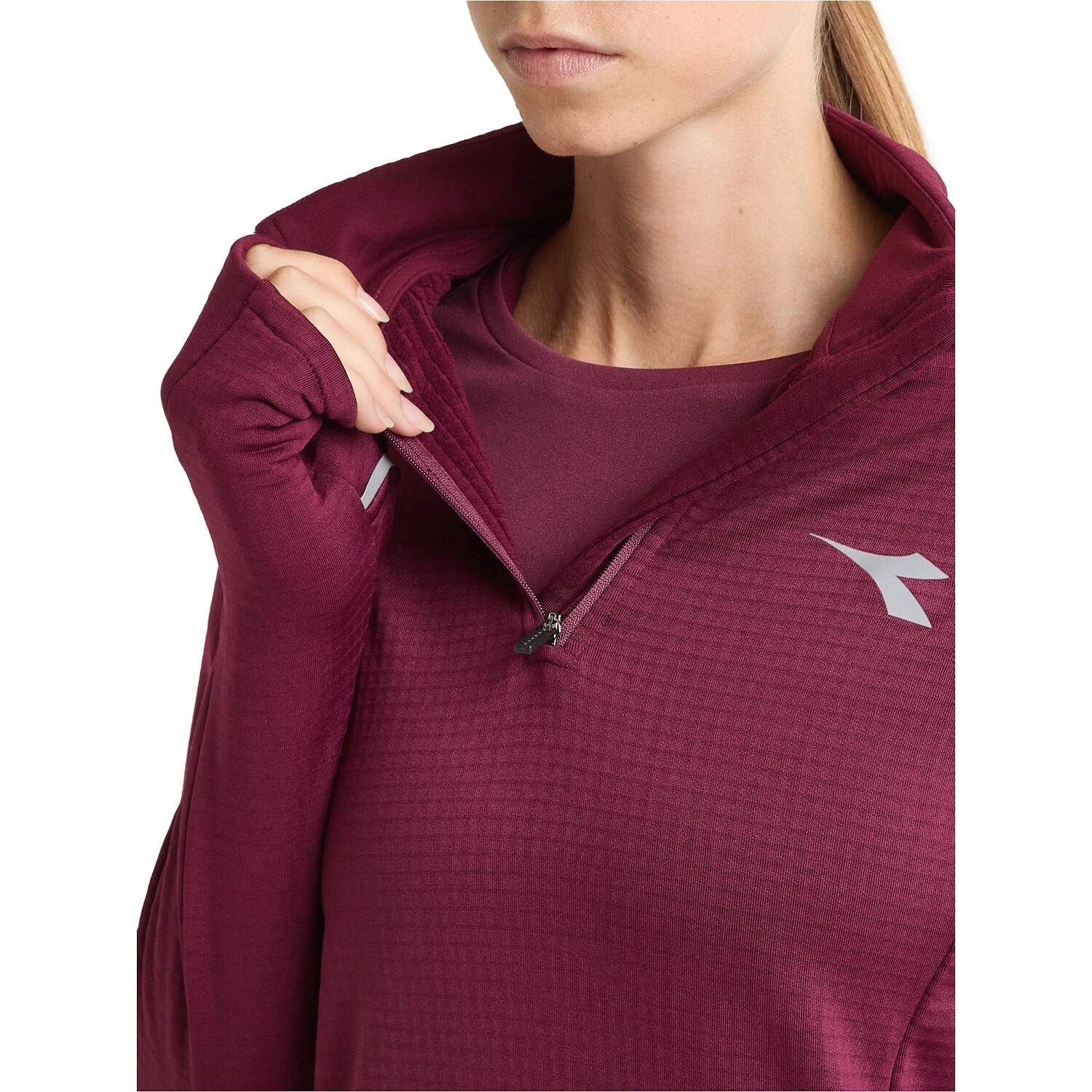 Bluza damska z zamkiem błyskawicznym do połowy długości. Materiał wykonany jest w nowej technologii FIBRAZERO (częściowo pochodzącej z recyklingu, częściowo pochodzącej z fusów kawy, wzmacnia właściwości zarządzania wilgocią oraz kontroluje zapach), z wewnętrzną strukturą 3D, aby zagwarantować maksymalny komfort pod względem termoregulacji i oddychalności. Bluza posiada detale, jak mankiety z pętelkami na kciuki, okienko na inteligentny zegarek i taśma odblaskowa, aby zwiększyć widoczność. Bluzę uzupełniają dwie kieszenie zapinane na zamek błyskawiczny z przodu. Krój ubrania jest dopasowany do anatomii ciała i został zaprojektowany tak, aby uniknąć miejsc powodujących nadmierne ocieranie.